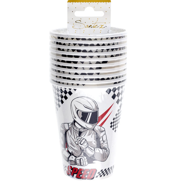 Χάρτινα ποτήρια με αγωνιστικό σχέδιο, πιλότο ταχύτητας και τη λέξη ‘SPEED’ ιδανικά για το θεματικό πάρτυ του μικρού σου!