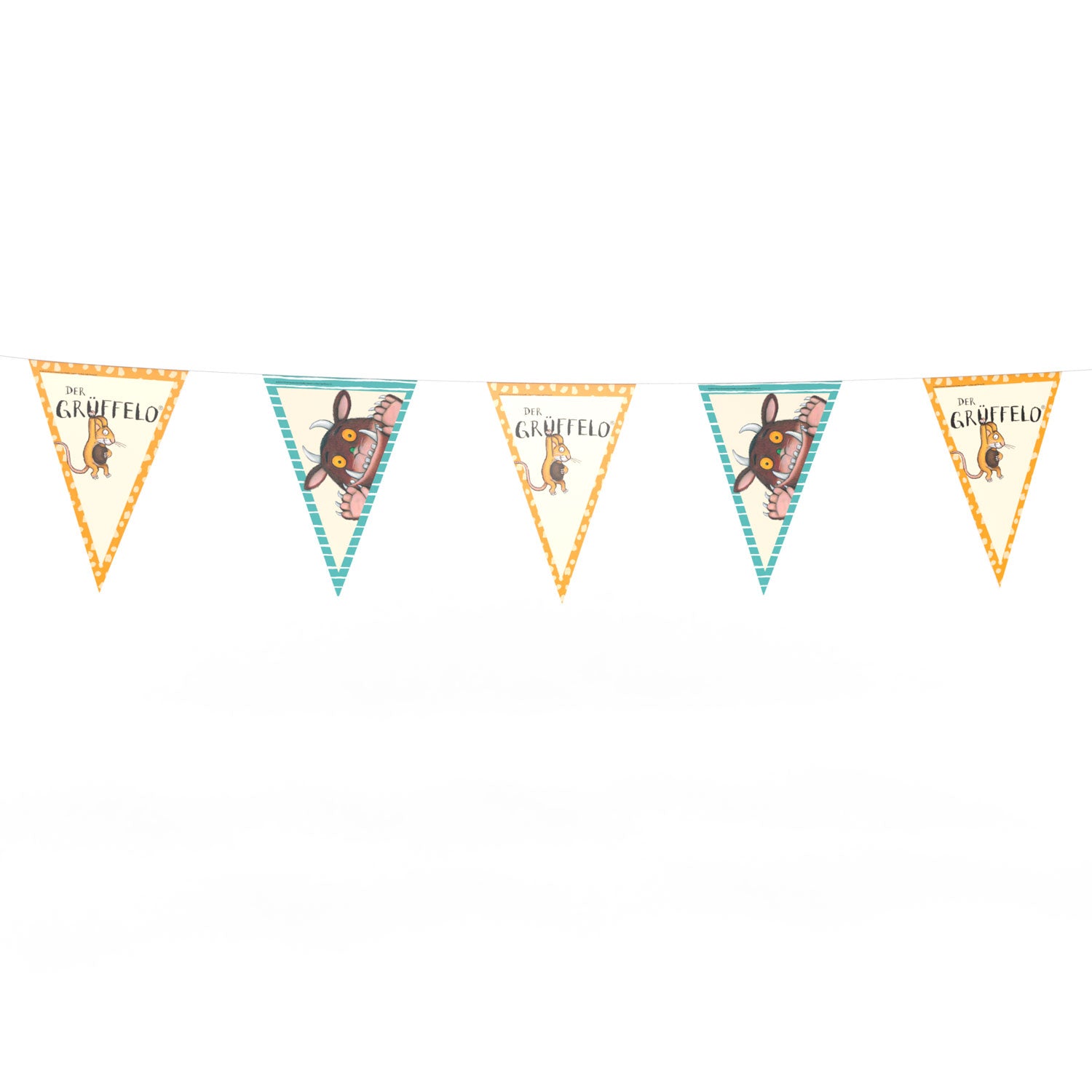 Διακοσμητικά τριγωνικά σημαιάκια με θέμα το αγαπημένο ποντίκι της ζούγκλας Γκρούφαλο για τη διακόσμηση του θεματικού πάρτυ σου!