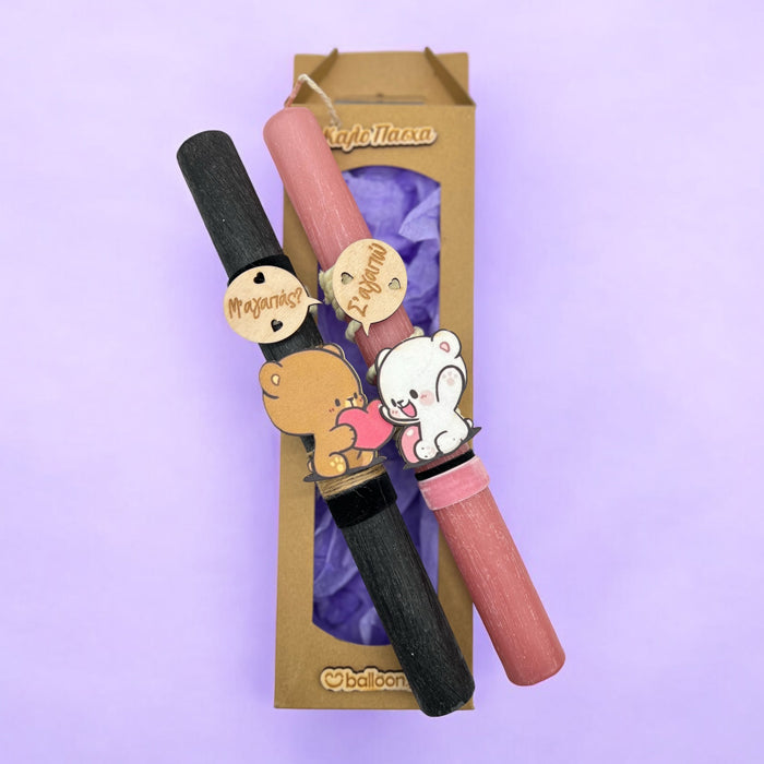 Σετ Λαμπάδες Bubu & Dudu από αρωματικά κεριά διακοσμημένα με κορδέλες. Θα τις κρατήσετε την Ανάσταση και θα είστε ασορτί!