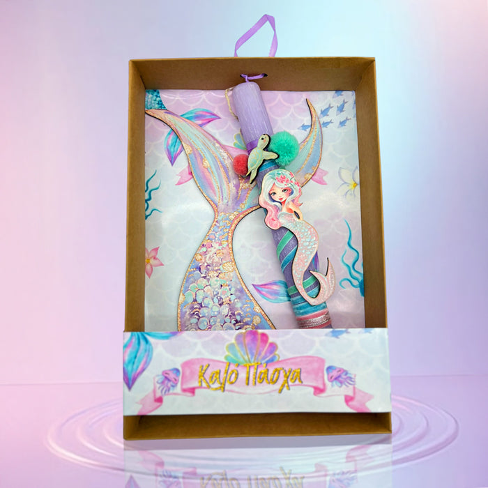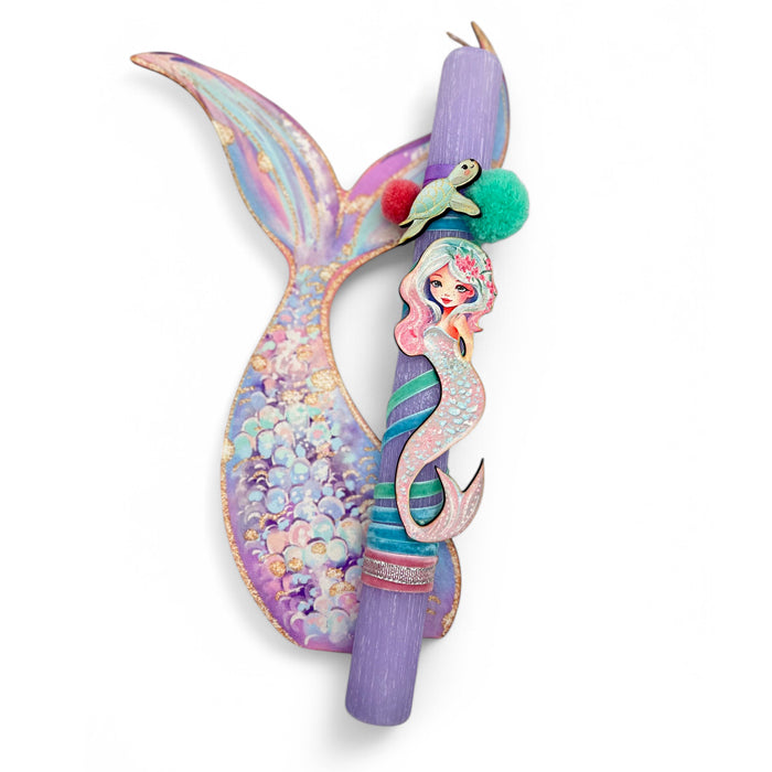 Πασχαλινή Λαμπάδα Γοργόνα μαζί με ξύλινο κάδρο για το δωμάτιο, για όλα τα κοριτσάκια που λατρεύουν τα παραμύθια!