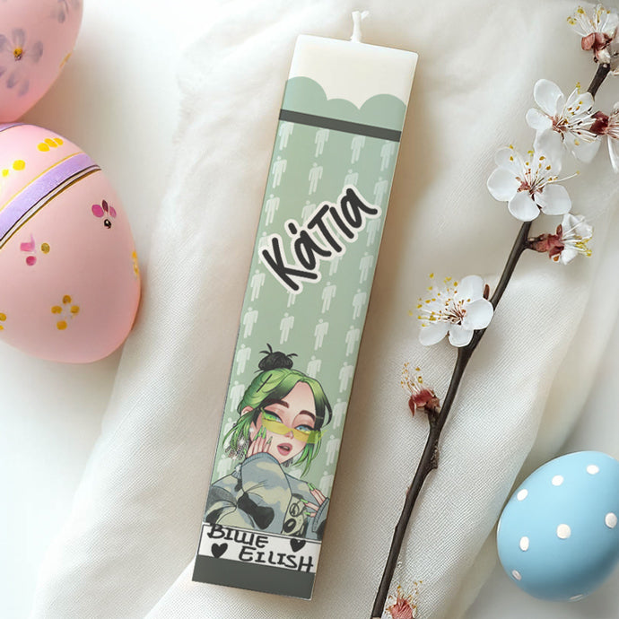 Μαγευτική λαμπάδα Billie Eilish για να την χαρίσεις ως δώρο στη βαφτιστήρα σου και να την ενθουσιάσεις, χαρίζοντάς της πολλά χαμόγελα!