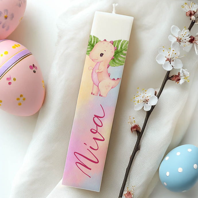 Μαγευτική λαμπάδα Δεινοσαυράκι για να την χαρίσεις ως δώρο στη βαφτιστήρα σου και να την ενθουσιάσεις, χαρίζοντάς της πολλά χαμόγελα!