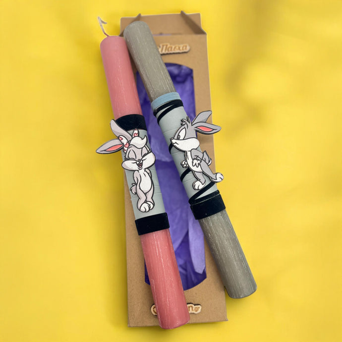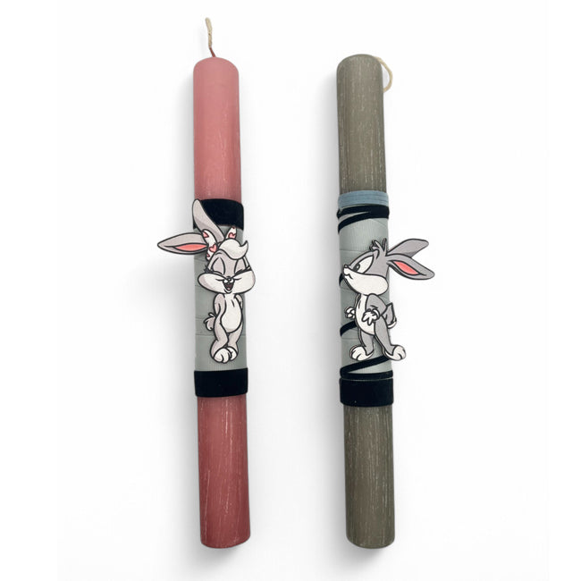 Σετ Λαμπάδες Lola & Bugs Bunny από αρωματικά κεριά διακοσμημένα με κορδέλες. Θα τις κρατήσετε την Ανάσταση και θα είστε ασορτί!