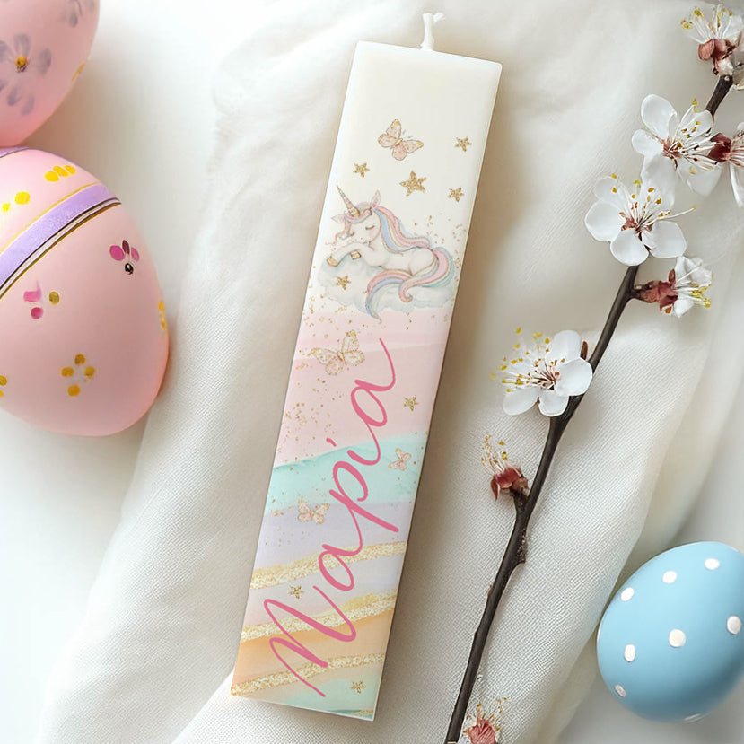 Μαγευτική λαμπάδα Μονόκερος για να την χαρίσεις ως δώρο στο βαφτιστήρι σου και να το ενθουσιάσεις, χαρίζοντάς του πολλά χαμόγελα!