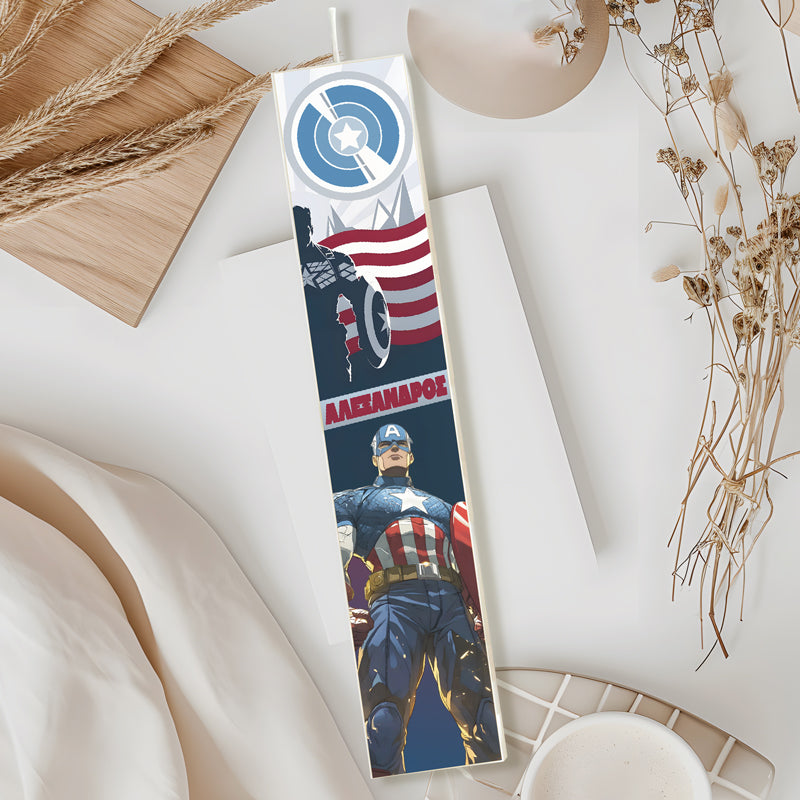Μαγευτική λαμπάδα Captain America για να την χαρίσεις ως δώρο στο βαφτιστήρι σου και να το ενθουσιάσεις, χαρίζοντάς του πολλά χαμόγελα!