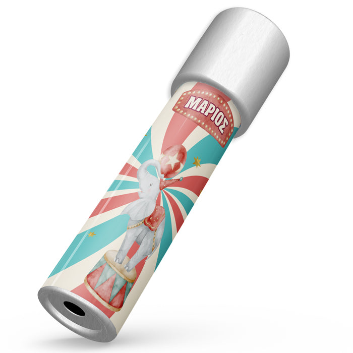 Καλειδοσκόπιο με θέμα Τσίρκο, που το περιστρέφεις και αποκαλύπτονται αμέτρητα σχέδια! Ιδανικό για δώρο στους μικρούς καλεσμένους του πάρτυ, που θα τους μαγνητίσει και θα τους οδηγήσει σε ένα ατελείωτο παιχνίδι με τις αντανακλάσεις του φωτός.