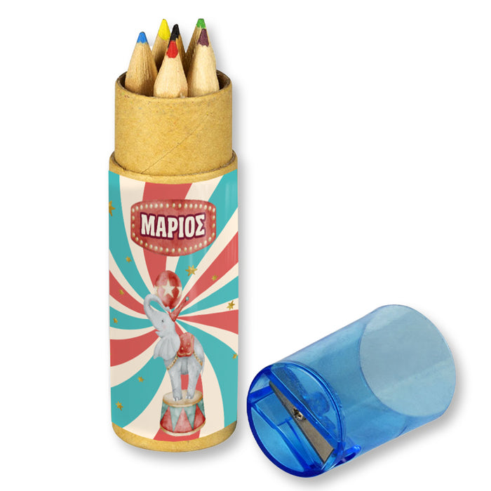 Χαρίστε στους μικρούς καλεσμένους του πάρτι, ένα δωράκι ξυλομπογιές με θέμα Τσίρκο! Μπορεί να τυπωθεί επάνω το όνομα του παιδιού!