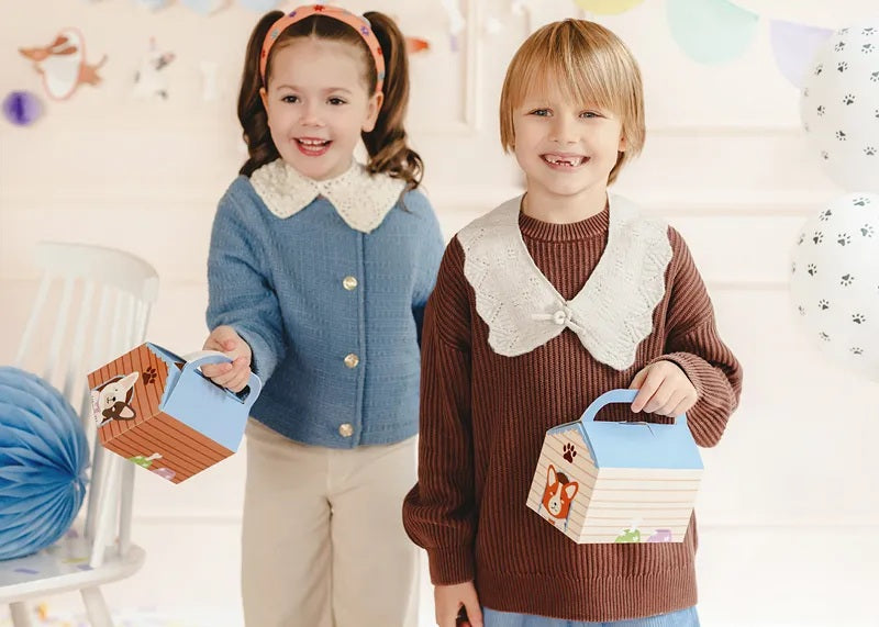 Χάρτινα κουτιά φαγητού σε σχήμα σπιτάκι σκύλου.Μία όμορφη πρόταση να τοποθετήσεις τα κεράσματα των παιδιών, γλυκά ή αλμυρά!