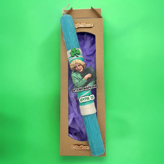 Πασχαλινή Αρωματική Λαμπάδα Ντένη Μαρκορά Θύρα 13, από την σειρά «Ντόλτσε Βίτα» με υπέροχα υλικά και κορδέλες, που θα κλέψει τις εντυπώσεις και θα γεμίσει με χαμόγελα νονούς και παιδιά!