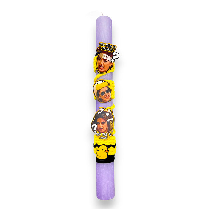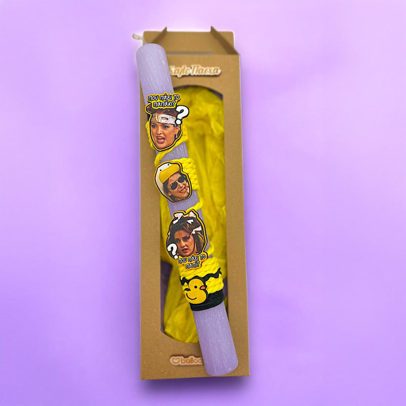 Πασχαλινή Αρωματική Λαμπάδα χιουμοριστική με το "συγκρότημα" Πάτ κιούτ, από την σειρά «Κωνσταντίνου και Ελένης» με υπέροχα υλικά και κορδέλες, που θα κλέψει τις εντυπώσεις και θα μοιράσει χαμόγελα!