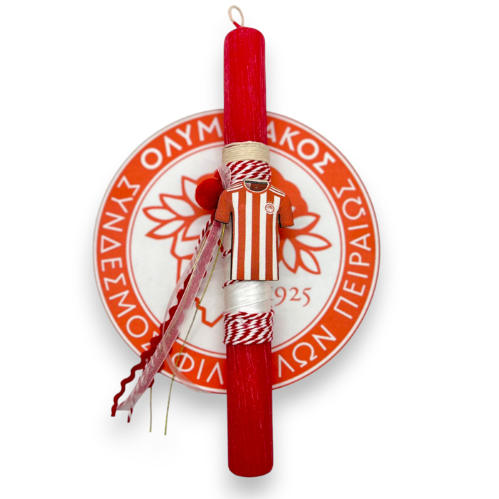- H λαμπάδα φέρει διακοσμητική φιγούρα Ολυμπιακός 6 εκ. με υψηλής ποιότητας εκτύπωση και κορδέλες σε ταιριαστές αποχρώσεις
