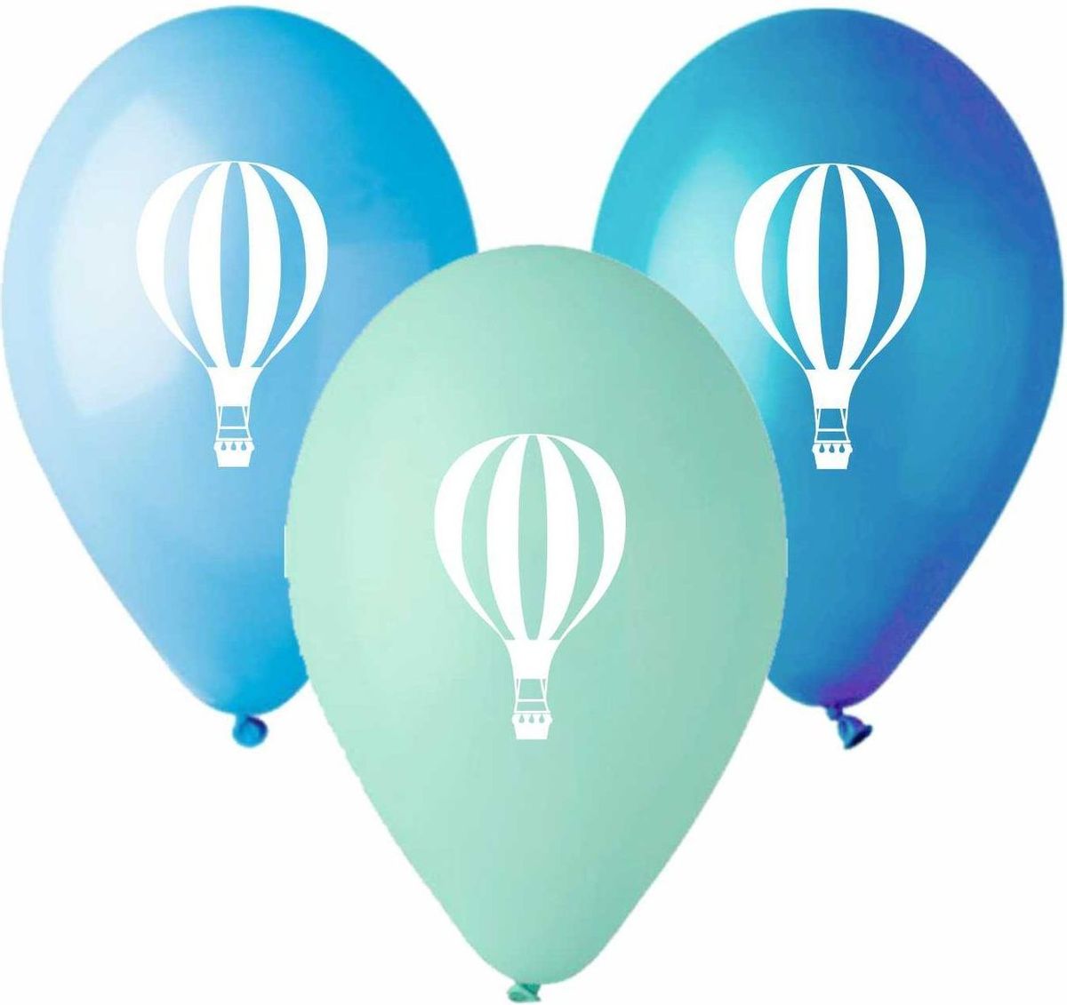 Latex τυπωμένα μπαλόνια με θέμα το Αερόστατο. Διατίθεται σε ροζ αποχρώσεις για κοριτσάκι ή σε γαλάζιο για αγοράκι.