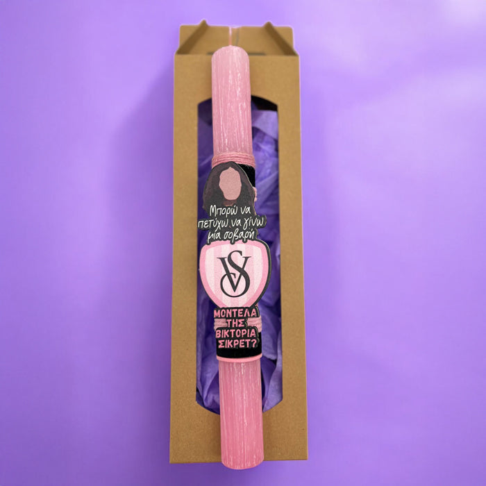 Πασχαλινή Αρωματική λαμπάδα Μοντέλα της Βικτόρια Σίκρετ, χιουμοριστική από το Next top model με υπέροχα υλικά και κορδέλες, που θα κλέψει τις εντυπώσεις και θα μοιράσει χαμόγελα!