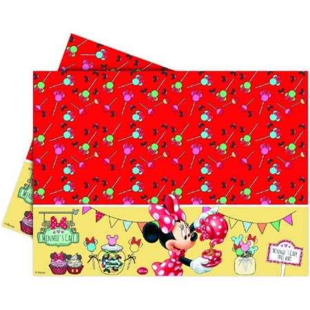 Κόκκινο τραπεζομάντηλο Minnie Mouse στο καφέ της, για το τραπέζι του πάρτυ!