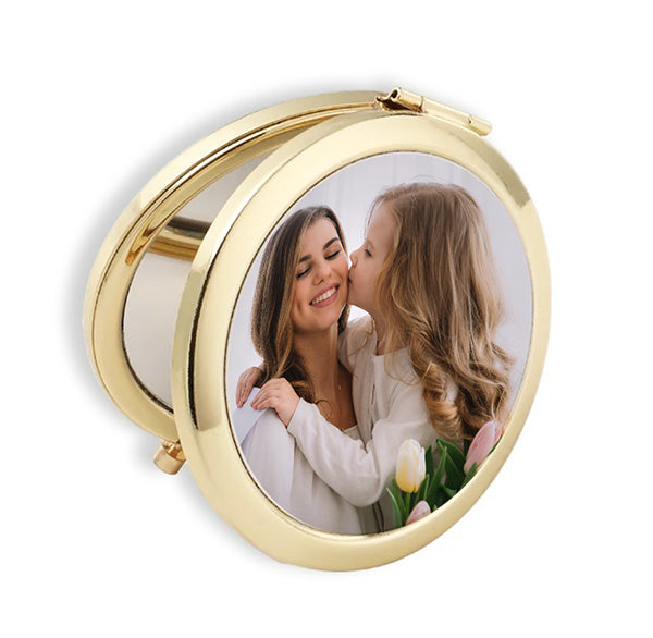 Μεταλλικό καθρεφτάκι στρογγυλό που ανοίγει, σε χρυσό χρώμα και την φωτογραφία της επιλογής σου για να το χαρίσεις ως δώρο στην αγαπημένη σου μαμά!