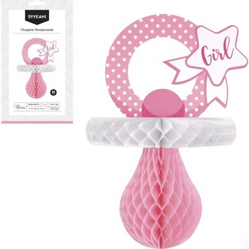 Μια εντυπωσιακή ροζ διακοσμητική κυψέλη με σχέδιο πιπίλα, για να κρεμάσετε από την οροφή και να στολίσετε το χώρο σας για το πάρτι, τη βάπτιση, τη γέννηση ή τη διακόσμηση παιδικού δωματίου.