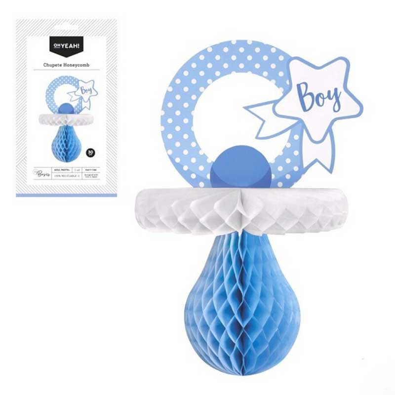 Μια εντυπωσιακή μπλε διακοσμητική κυψέλη με σχέδιο πιπίλα, για να κρεμάσετε από την οροφή και να στολίσετε το χώρο σας για το πάρτι, τη βάπτιση, τη γέννηση ή τη διακόσμηση παιδικού δωματίου.