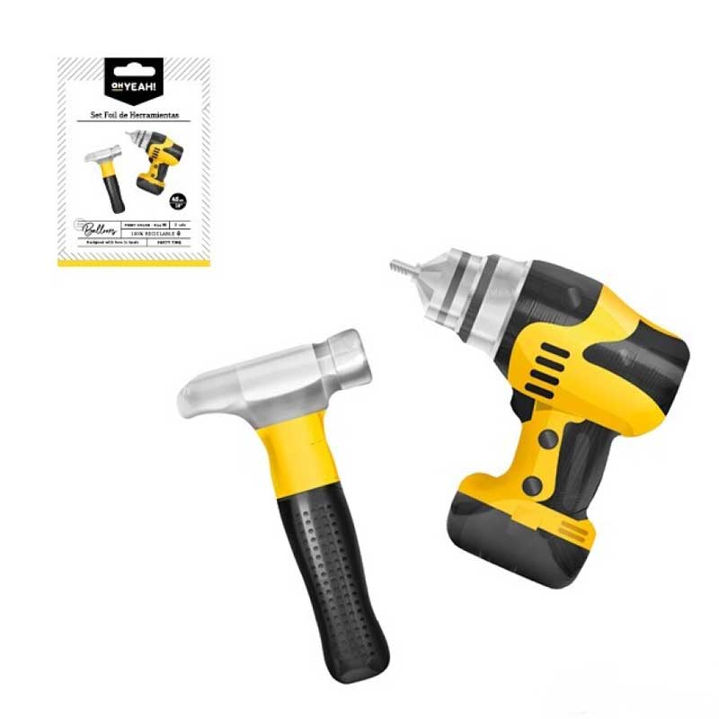 Σετ μπαλονιών σε σχήμα εργαλεία με σχέδια τρυπάνι και σφυρί. Τέλεια επιλογή για under construction party, παιδικά πάρτι και θεματική διακόσμηση.