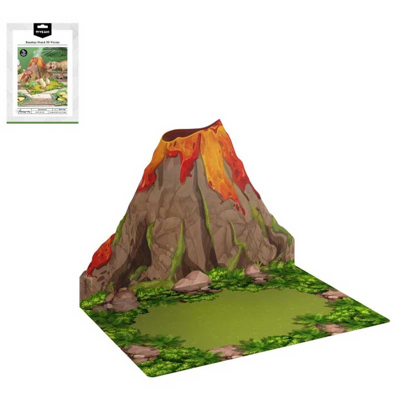 Εντυπωσιακός δίσκος για σνακ που απεικονίζει ένα τρισδιάστατο ενεργό ηφαίστειο στο επίκεντρο, περιτριγυρισμένο από προϊστορικό τοπίο με φυτά και λάβα. Ιδανικός για θεματικά πάρτι ή παιδικά γεύματα, συνδυάζει λειτουργικότητα με διασκέδαση, ενισχύοντας τη φαντασία μικρών και μεγάλων.