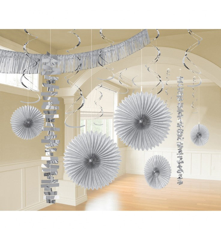 Δημιουργήστε μια εντυπωσιακή διακόσμηση με ασημί ροζέτες, swirls και γιρλάντες για το πάρτι, τη βάπτιση, το μαγαζί.