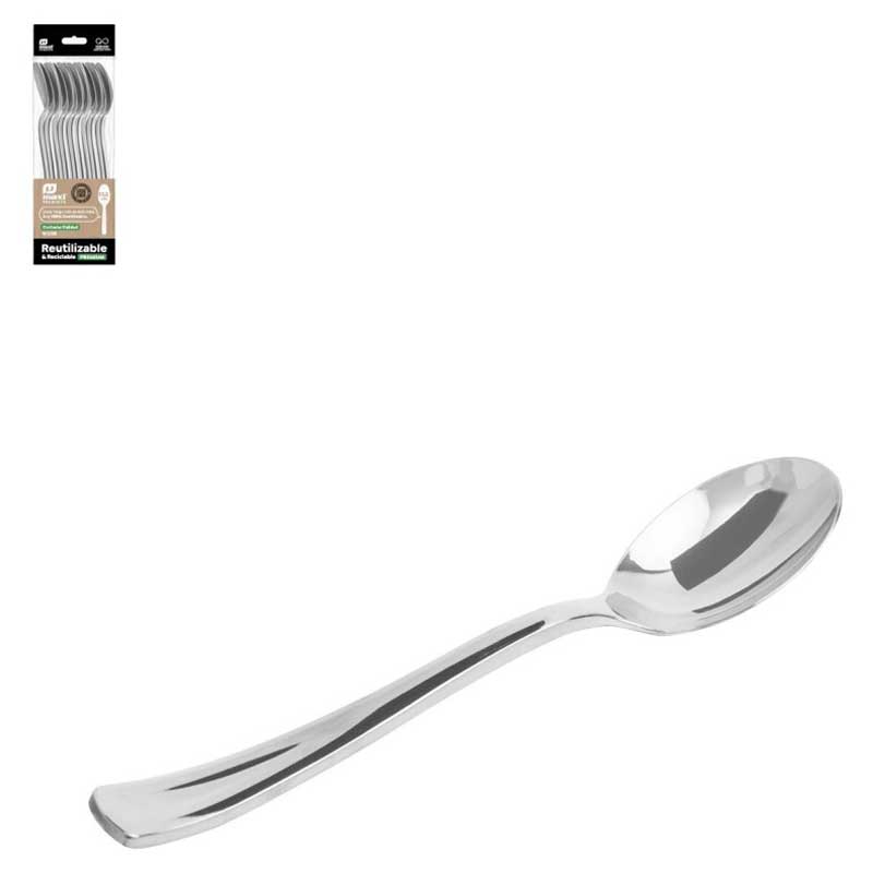 Επαναχρησιμοποιούμενα πλαστικά κουταλάκια σε χρώμα μεταλλικό ασημί. Μια πρωτότυπη σειρά από επαναχρησιμοποιήσιμα προϊόντα, κατάλληλα για καθημερινή χρήση αλλά και για κάθε εκδήλωση όπως γενέθλια, πάρτι ή άλλες εορταστικές περιστάσεις.
