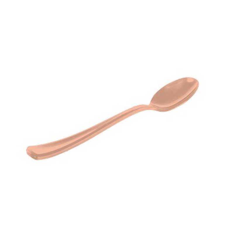 Επαναχρησιμοποιούμενα πλαστικά κουταλάκια σε χρώμα ροζ χρυσό. Μια πρωτότυπη σειρά από επαναχρησιμοποιήσιμα προϊόντα, κατάλληλα για καθημερινή χρήση αλλά και για κάθε εκδήλωση όπως γενέθλια, πάρτι ή άλλες εορταστικές περιστάσεις.