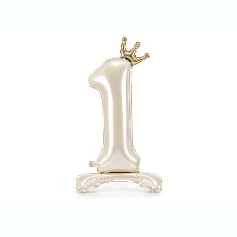 Μεγάλο κρεμ μπαλόνι αριθμός 1 με χρυσό στέμμα, που στέκεται, για να δημιουργήσετε έναν αξέχαστο στολισμό στα πρώτα γενέθλια του μωρού σας και να βγάλετε μοναδικές φωτογραφίες!!