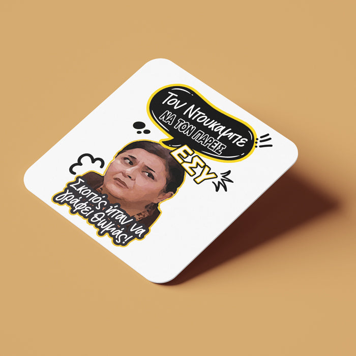 Ξύλινο σουβέρ για να ακουμπάς την κούπα σου, με την πολυαγαπημένη Ζουμπουλία από την ελληνική σειρά στο Παρά 5 με την ατάκα ΝΤΟΥΚΑΜΠΕ.