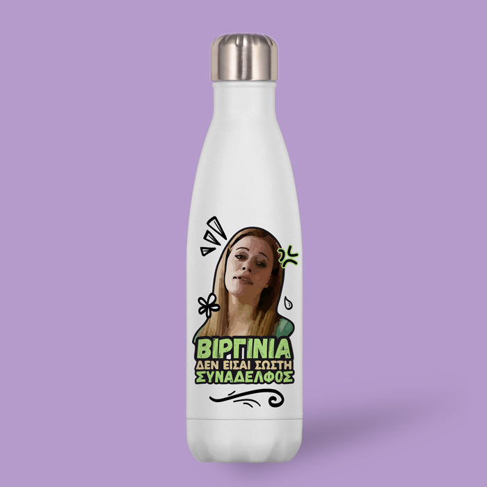 Το τέλειο παγούρι - θερμός με την πολυαγαπημένη Αμαλία από την ελληνική σειρά στο Παρά 5 με την ατάκα ΒΙΡΓΙΝΙΑ και να μοιράζεις χαμόγελα. Κατασκευασμένο από ανθεκτικό ανοξείδωτο ατσάλι διπλού τοιχώματος που διατηρεί τη θερμοκρασία, αυτός ο θερμός είναι ιδανικός για να τον μεταφέρεις μαζί σου όπου κι αν πας.