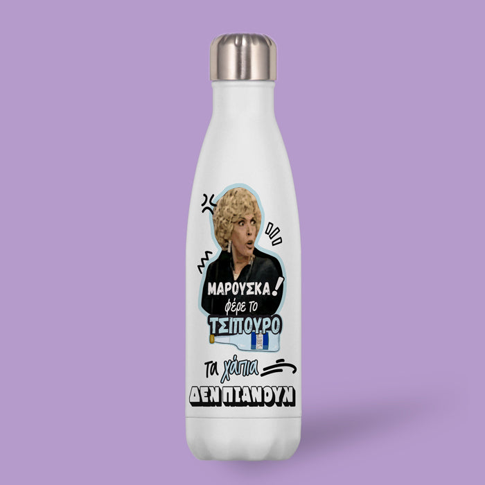Το τέλειο παγούρι - θερμός με την πολυαγαπημένη Μαρκορά από την λατρεμένη ελληνική σειρά «Δύο Ξένοι» με την ατάκα ΜΑΡΟΥΣΚΑ φέρε το Τσίπουρο και να μοιράζεις χαμόγελα. Κατασκευασμένο από ανθεκτικό ανοξείδωτο ατσάλι διπλού τοιχώματος που διατηρεί τη θερμοκρασία, αυτός ο θερμός είναι ιδανικός για να τον μεταφέρεις μαζί σου όπου κι αν πας.