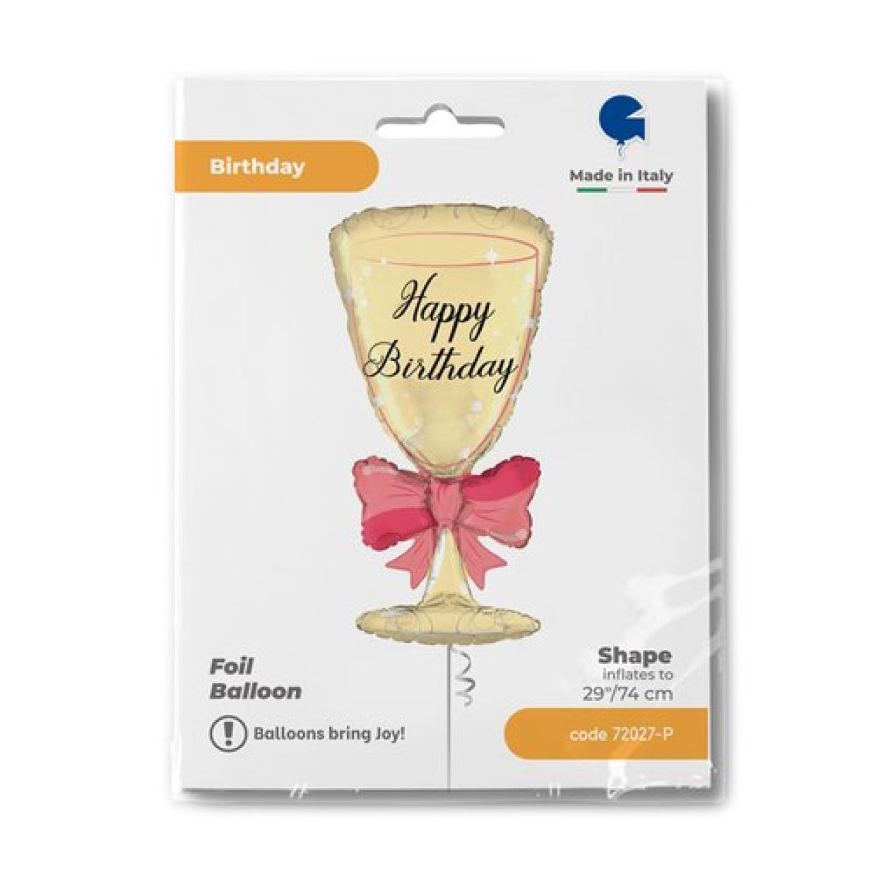 Μπαλόνι με σχέδιο ποτήρι σαμπάνιας και μήνυμα "Happy Birthday", για να δημιουργήσεις τον πιο κομψό και εντυπωσιακό στολισμό στο πάρτυ γενεθλίων σου!