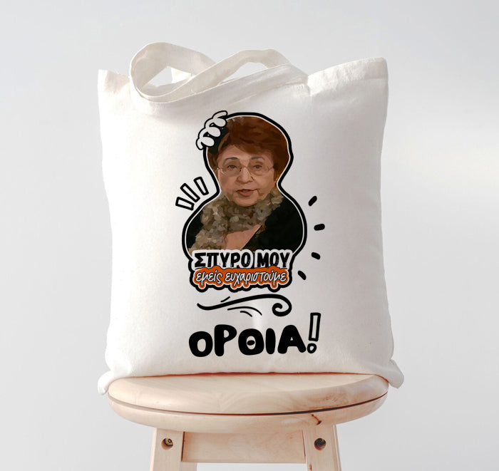Τσάντα για να κρατάς με την πολυαγαπημένη Θεοπούλα από την ελληνική σειρά στο Παρά 5 με την ατάκα ΟΡΘΙΑ και να μοιράζεις χαμόγελα.