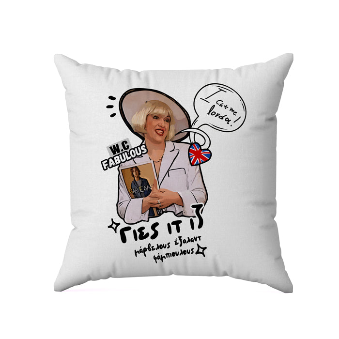 Μαξιλάρι για να διακοσμεί τον χώρο σου, με την πολυαγαπημένη Ελένη Βλαχάκη ΛΑΙΔΗ ΠΕΤΟΥΛΑ από την λατρεμένη ελληνική σειρά «Κωνσταντίνου και Ελένης».