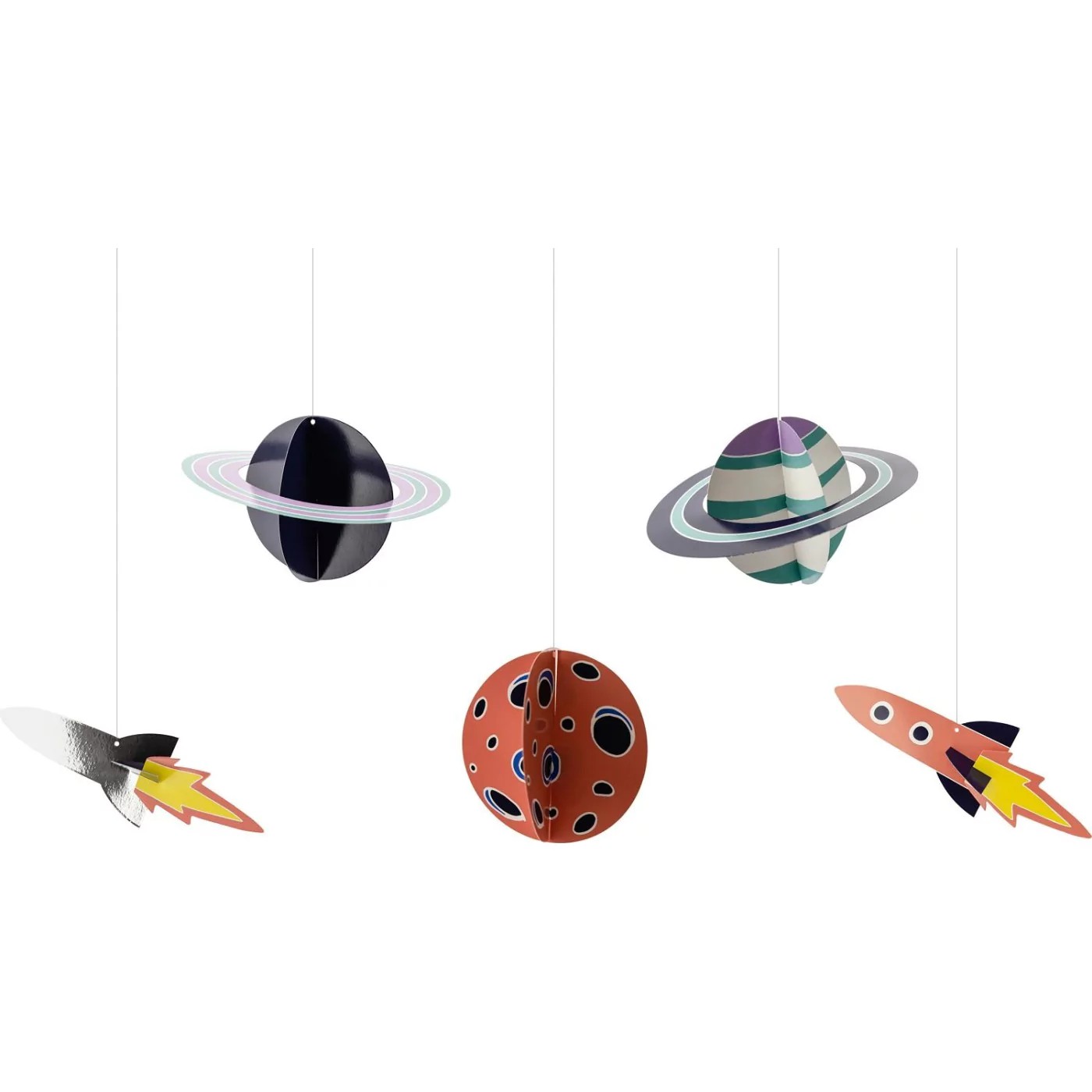 Κρεμαστά διακοσμητικά με θέμα Διάστημα για να στολίσεις μοναδικά το χώρο του θεματικού πάρτυ και να τραβήξετε τις πιο ωραίες φωτογραφίες! Κρεμάστε τα διακοσμητικά στην πόρτα, στα παράθυρα, στην οροφή ή χρησιμοποιήστε τα ως backdrop για τις φωτογραφίες.