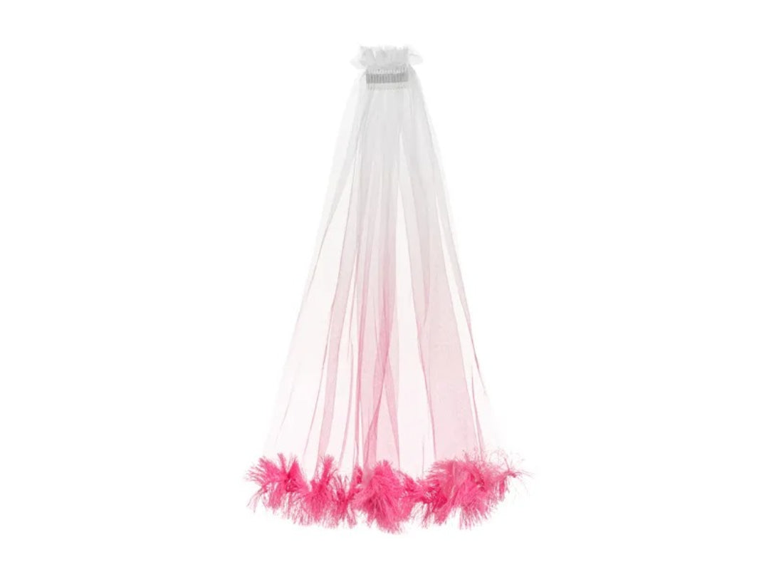 Πρόσθεσε μια ρομαντική και μοντέρνα πινελιά στο νυφικό σου με αυτό το ροζ πέπλο μήκους 69 εκατοστών, διακοσμημένο με λεπτεπίλεπτα κρόσσια στα άκρα. Το απαλό χρώμα και η παιχνιδιάρικη υφή των κρόσσιων δημιουργούν μια αέρινη και κομψή ατμόσφαιρα, ιδανική για νύφες που θέλουν να ξεχωρίζουν με στυλ και θηλυκότητα.