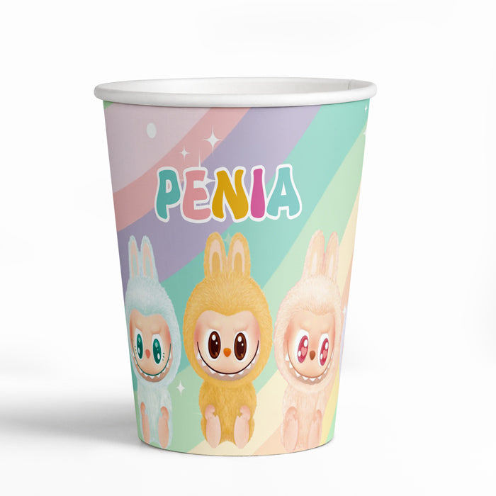 Ποτηράκια με θέμα LABUBU και εκτυπωμένο το όνομα που επιθυμείτε, για να κεράσετε τους καλεσμένους σας στο τραπέζι του πάρτυ!