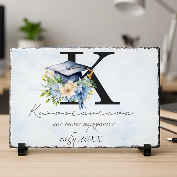 Εντυπωσιακή πέτρινη κορνίζα με αφιέρωση, για να χαρίσεις ως δώρο στον φίλο σου που πήρε το πτυχίο του! Σε αυτό το προϊόν φωτογραφίας, συνδυάζετε τη σύγχρονη τεχνολογία εκτύπωσης σε ένα κομμάτι φυσικής πέτρας.