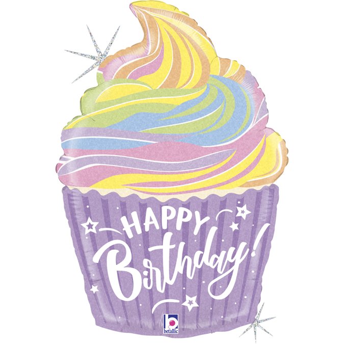"Μεγάλο, σχηματικό, foil μπαλόνι σε παστέλ χρώματα Happy Birthday