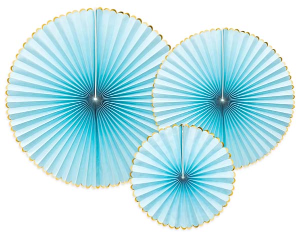 Σετ χάρτινες βεντάλιες ανοιχτό γαλάζιο (3 τεμ). Δημιουργήστε μία όμορφη και ιδιαίτερη διακόσμηση στο χώρο σας, για το πάρτυ, τη βάπτιση ή μία εκδήλωση!