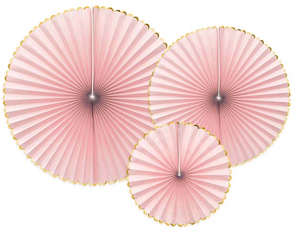Σετ χάρτινες βεντάλιες ανοιχτό ροζ (3 τεμ). Δημιουργήστε μία όμορφη και ιδιαίτερη διακόσμηση στο χώρο σας, για το πάρτυ, τη βάπτιση ή μία εκδήλωση!