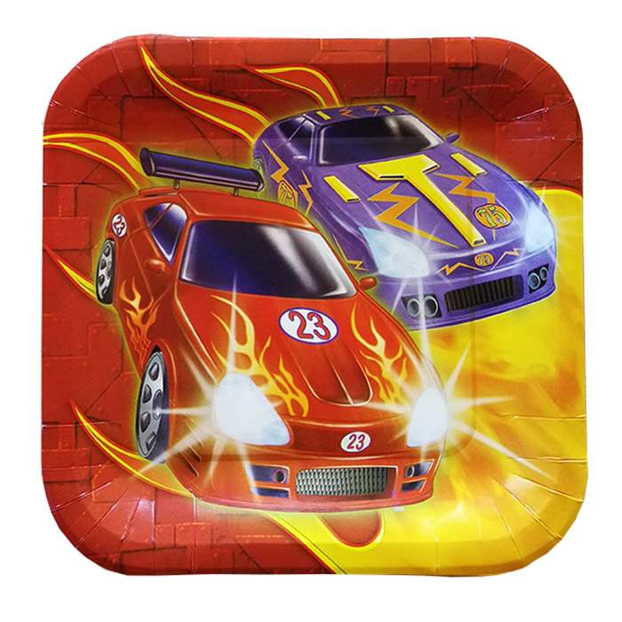 Κάθε πακέτο περιλαμβάνει 8 χάρτινα πιάτα διακοσμημένα με αυτοκίνητα ράλλυ.