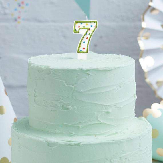 Κεράκι τούρτας με τον αριθμό 7 και πολύχρωμα πουά.