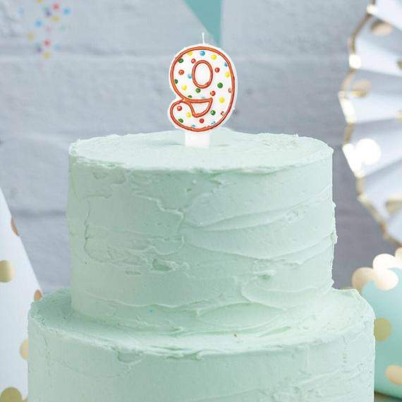 Κεράκι τούρτας με τον αριθμό 9 και πολύχρωμα πουά.