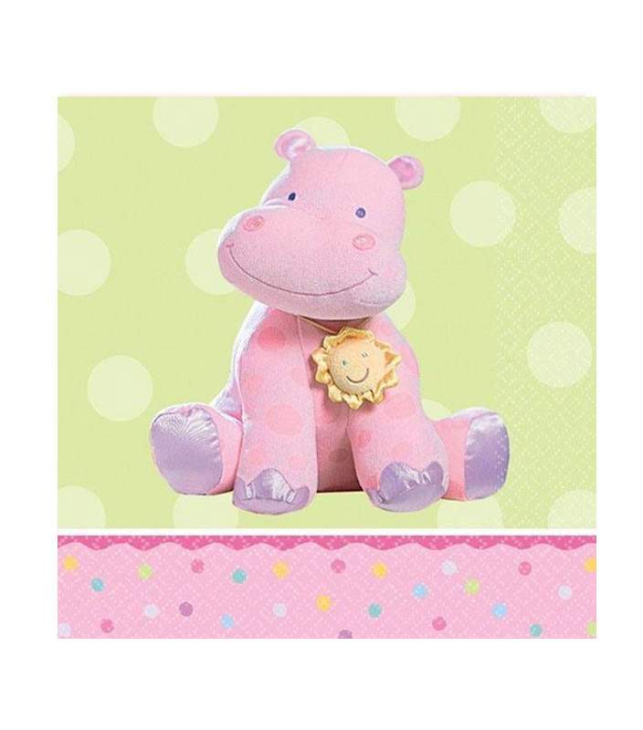 "Μικρές χαρτοπετσέτες με ροζ Ιπποπόταμο. Ιδανική επιλογή για να στολίσετε το τραπέζι για το πάρτυ γενεθλίων ή τη βάπτιση!