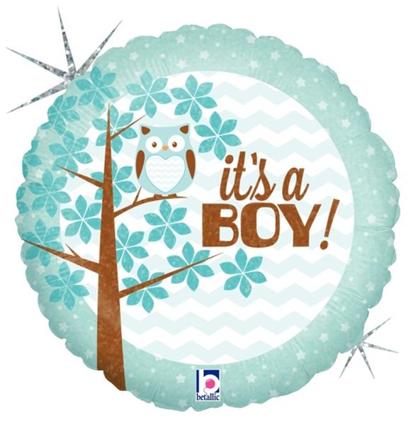 "Μπαλόνι γέννησης Its a Boy κουκουβάγια που ιριδίζει για να χαρίσετε στο μωράκι σας την καλύτερη υποδοχή ή να διακοσμήσετε μοναδικά τη βάπτιση του!