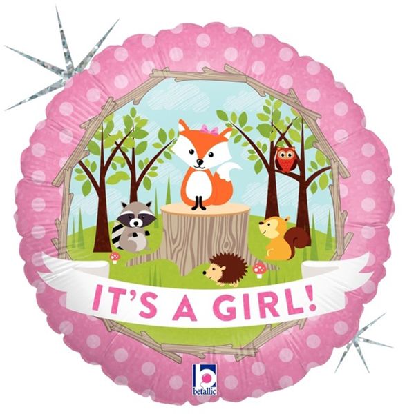 "Μπαλόνι γέννησης Δάσος Baby Girl που ιριδίζει για να χαρίσετε στο μωράκι σας την καλύτερη υποδοχή ή να διακοσμήσετε μοναδικά τη βάπτιση του!