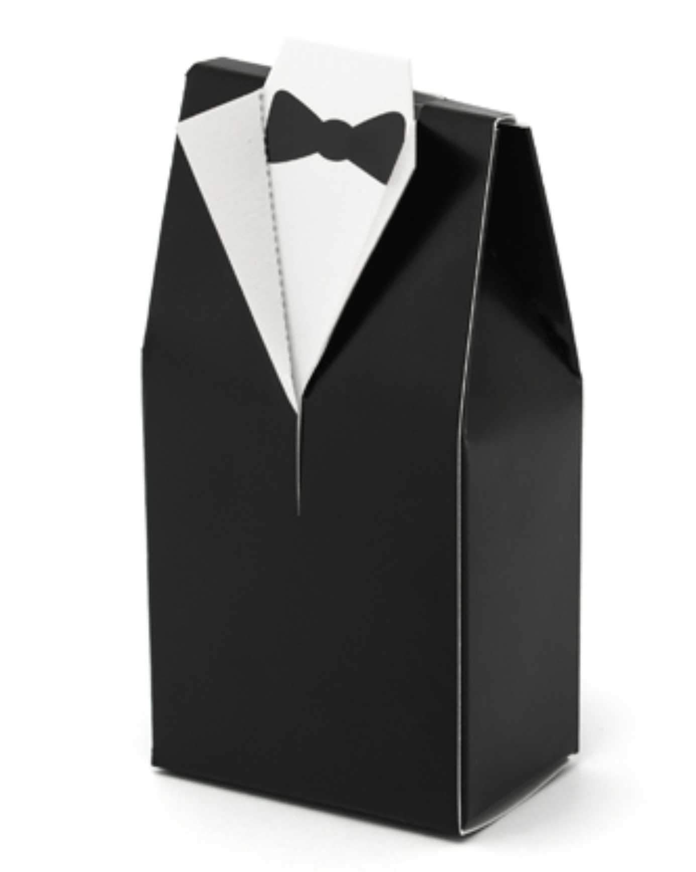 "Μαύρα χάρτινα κουτάκια μπομπονιέρας σε σχήμα γαμπριάτικο κουστούμι!