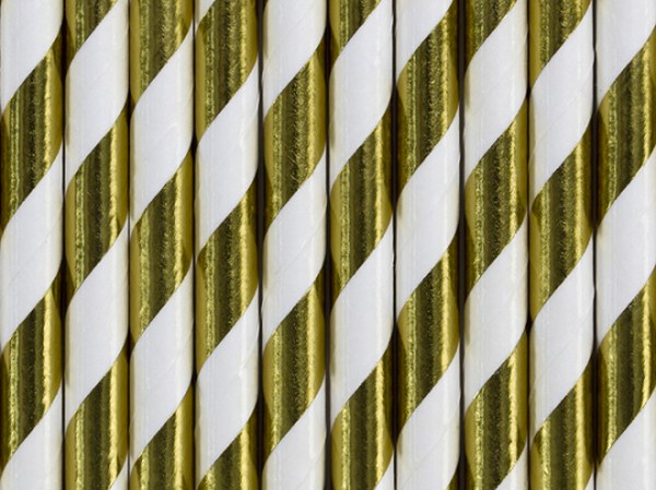 "Χρυσά ριγέ καλαμάκια για το μπουφέ του πάρτυ. Είναι χάρτινα και οικολογικά και συγχρόνως πολύ στιλάτα!