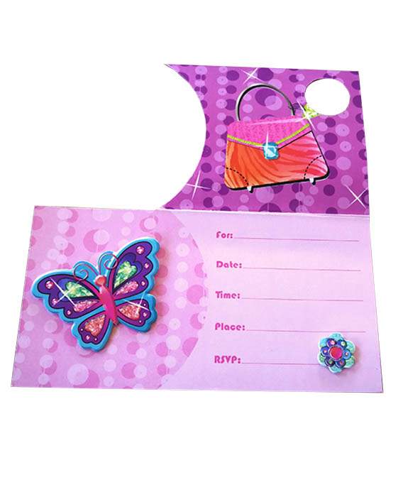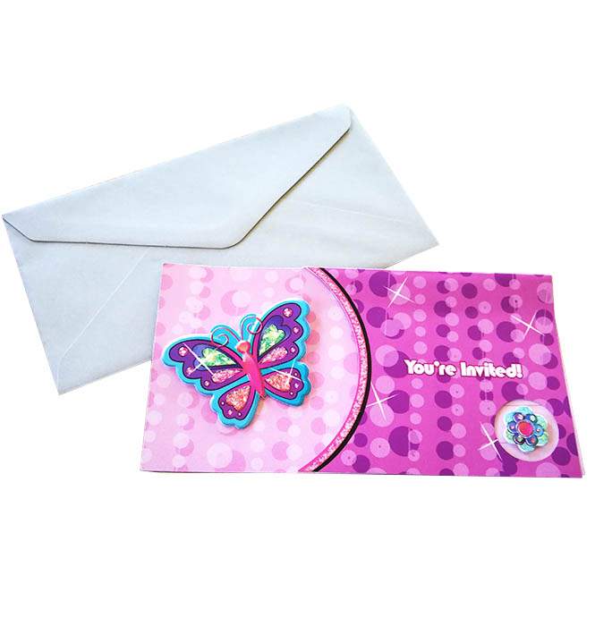 "Προσκλητήρια πάρτυ Glamour girl με 3D πεταλούδα (8 τεμ)Διαστάσεις 14 x 11 εκ"