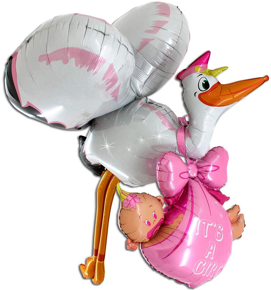 "Μπαλόνι γέννησης Πελαργός κοριτσάκι 3D (2 τεμ) για να χαρίσετε στο μωράκι σας την καλύτερη υποδοχή ή να διακοσμήσετε μοναδικά τη βάπτιση του!